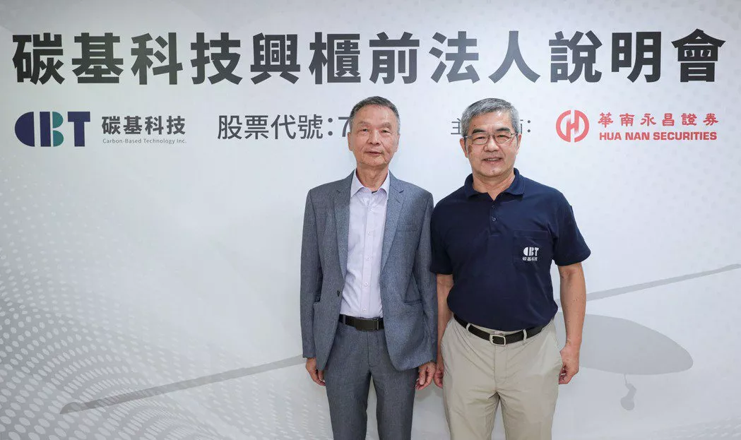 碳基科技董事長林振義(右)與碳基科技總經理鍾文隆, 共同合影。 華南永昌證券/提供