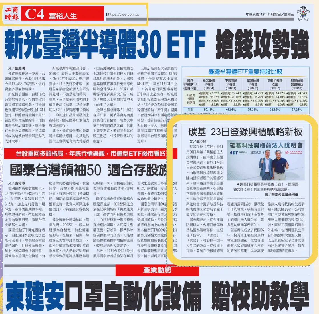 紙媒【工商時報】碳基 23日登錄興櫃戰略新板
